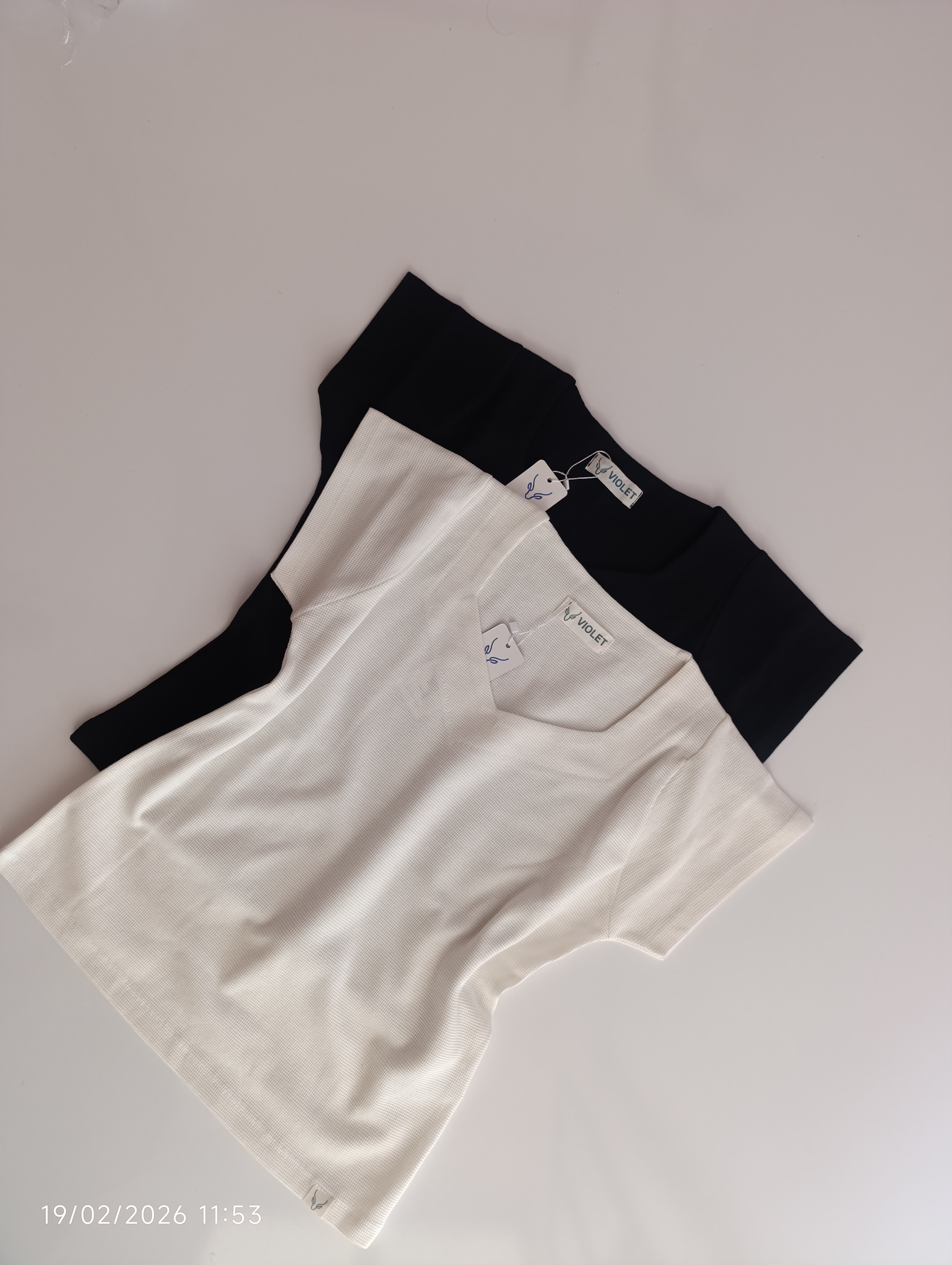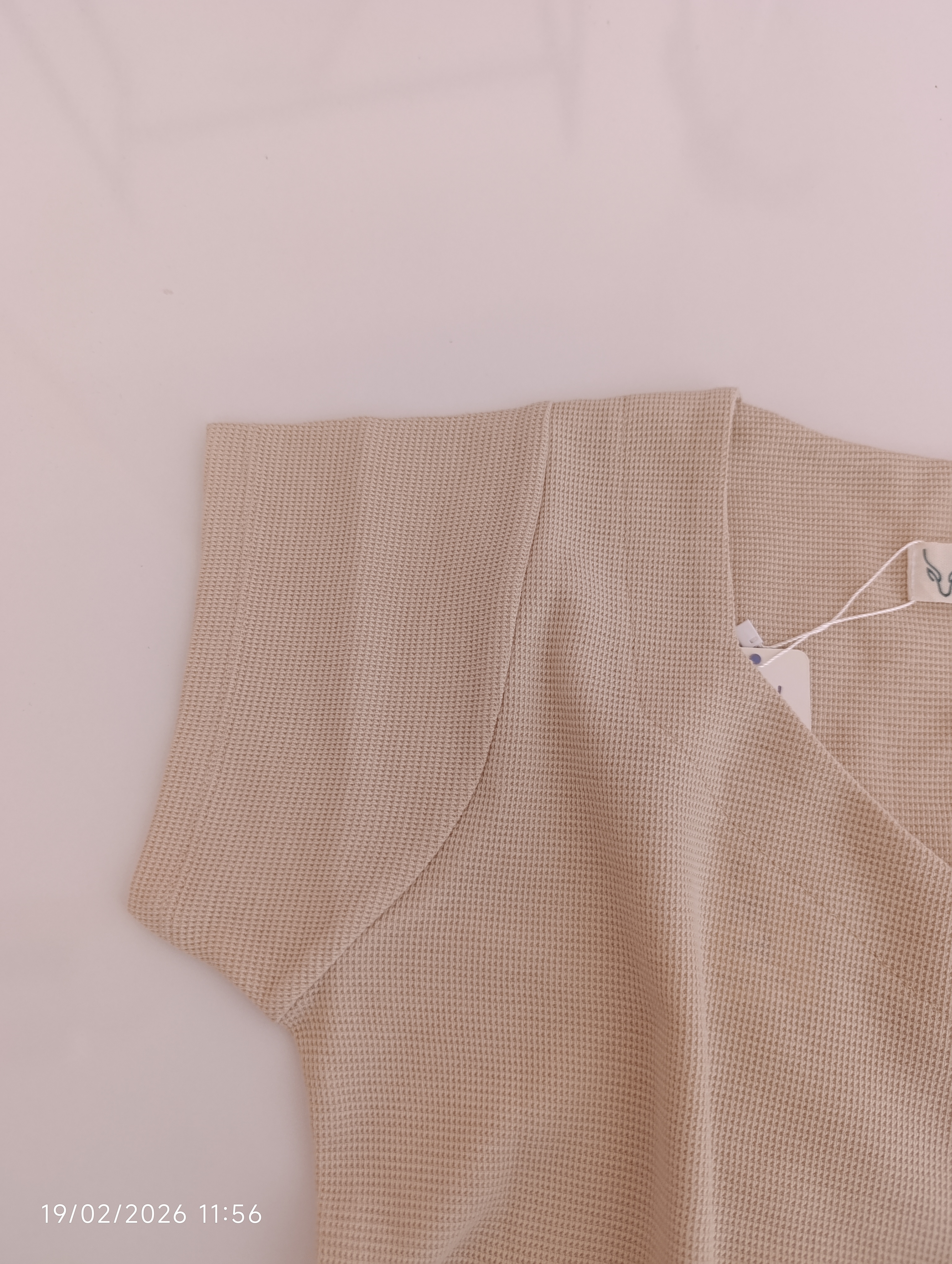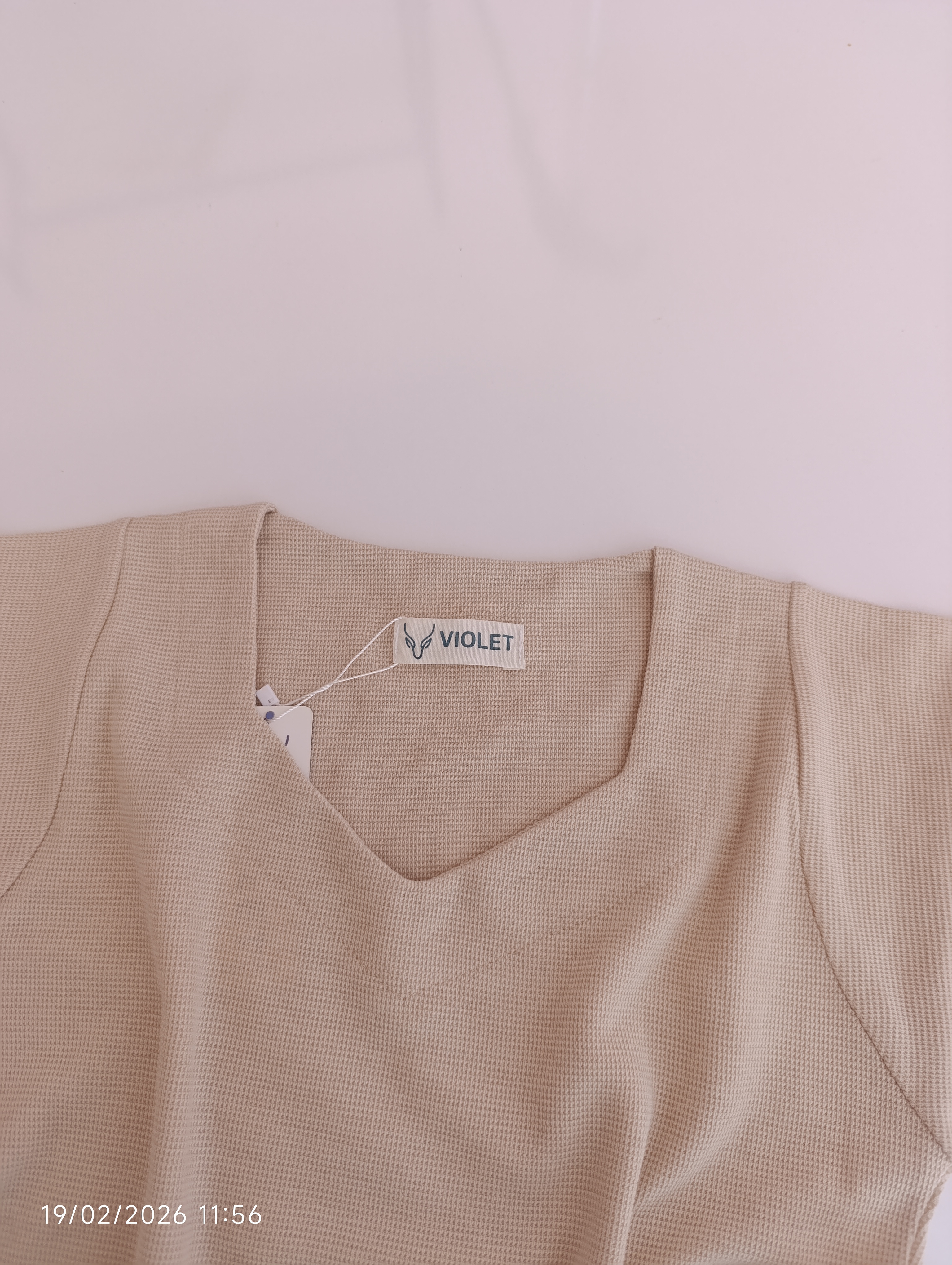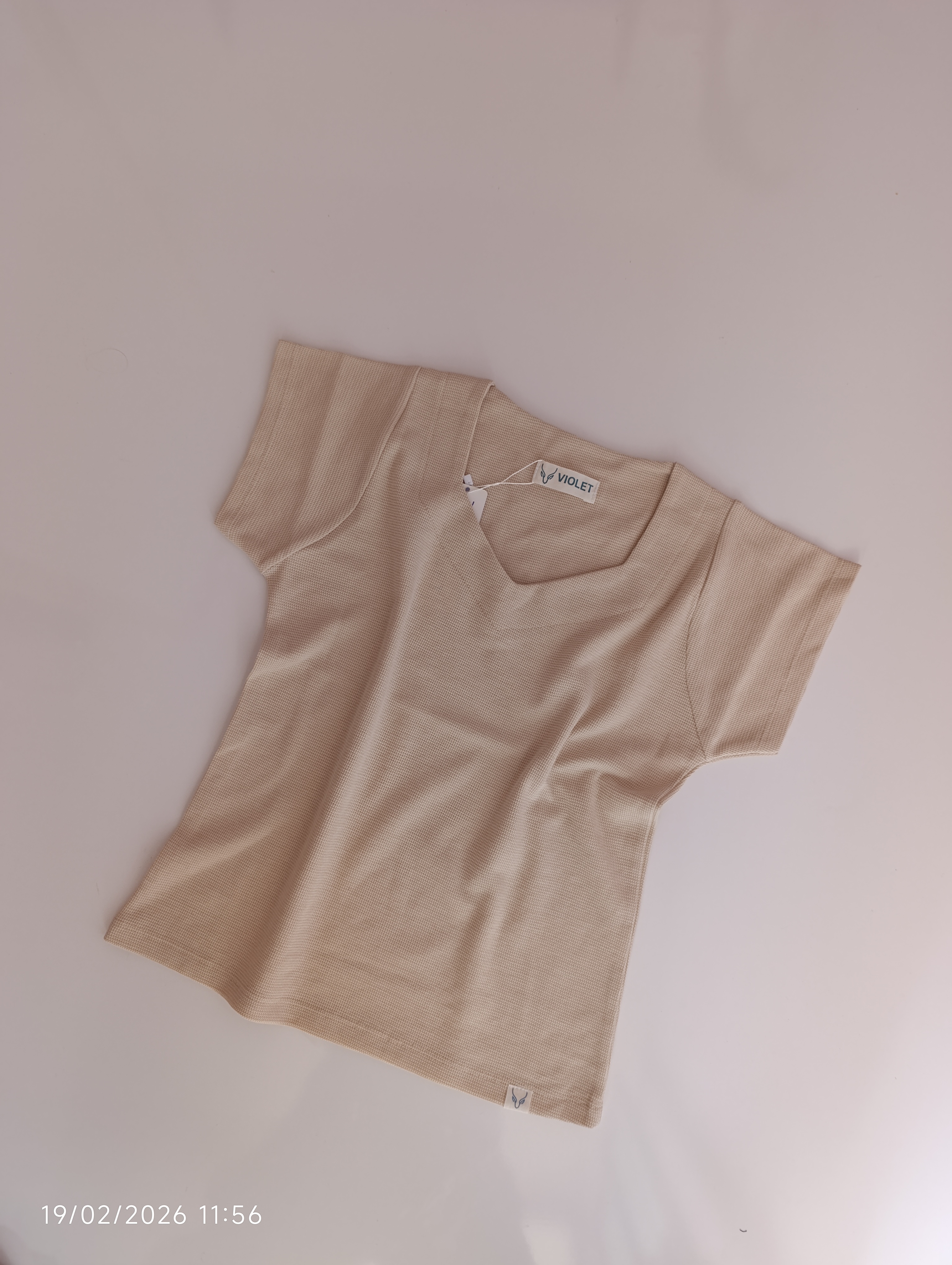 تیشرت بیسکویتی آستین کوتاه یقه هفت زنانه