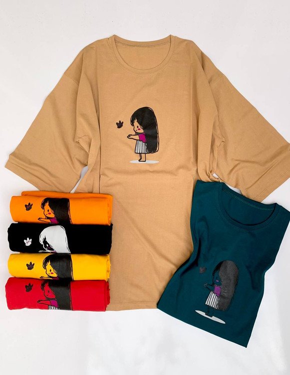 تیشرت لانگ دخترانه جنس نخ پنبه
